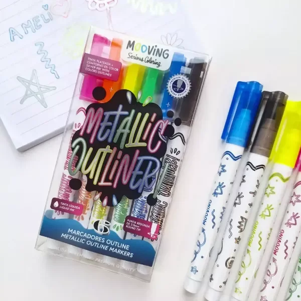 Los 'Marcadores Mooving Metallic Outliner Con Contorno X6 Colores' son ideales para dar un toque artístico y vibrante a tus proyectos. Elaborados con un cuerpo de plástico duradero, cada uno de los seis marcadores ofrece un color metálico distintivo. Su tinta a base de agua garantiza una aplicación suave y fluida, a pesar de que no son lavables ni a prueba de agua. Con un grosor de trazo de 3.5 mm y una punta redonda, estos marcadores son perfectos para el uso escolar y para cualquier actividad creativa. Vienen empaquetados en un práctico blíster, lo que facilita su almacenamiento y transporte. Recuerda agitar bien cada marcador antes de su uso y aplicar una ligera presión para lograr un efecto óptimo. Disfruta de tu creatividad y lleva tu arte al siguiente nivel con estos marcadores únicos.